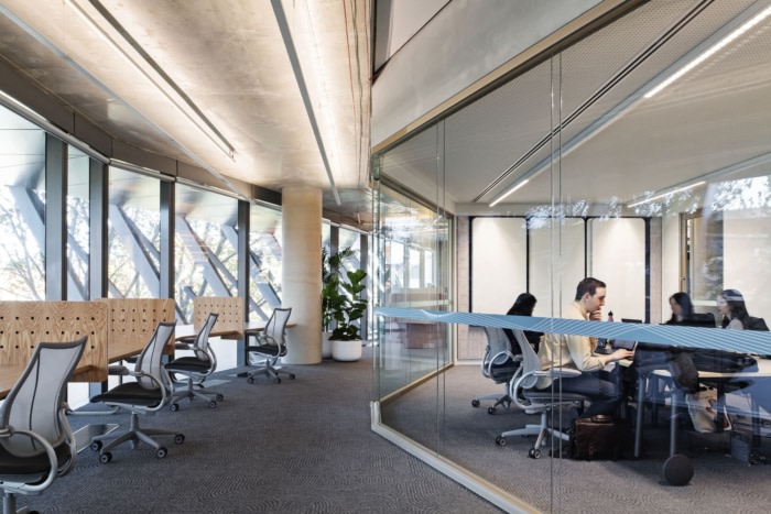 该设计借鉴了对水和管道的参考——从支撑会议室桌子的铜管,到反光表面和高度透明度,再到材料性和包含定制设计的水井,这些水井链接到一个应用程序,以鼓励和跟踪员工的用水量。#办公楼设计装修公司哪家好#