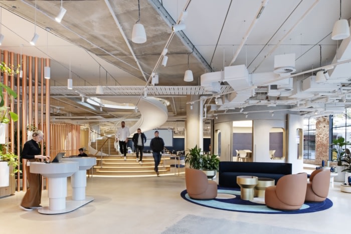 螺旋楼梯创造了从展厅区域到1楼的流畅流动,企业的网络,合作伙伴和员工通过多功能会议室和培训室,访客的着陆工作点和集团的执行会议室进行容纳。敏捷性和灵活性已通过室内设计得到探索,关键行为和标志性技术为成功的混合工作奠定了基础。#办公楼设计装修#