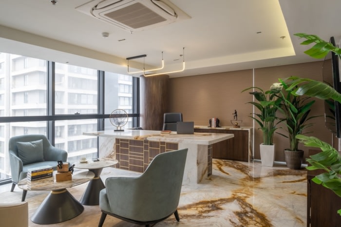 #办公室装修公司哪家好#鹅卵石地板和无鞋文化有助于营造空间的禅意花园感