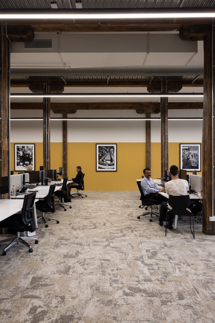 新办公空间的设计考虑了美丽的木柱和横梁,并采用了空间中的高天花板和裸露的砖砌。在整个设计过程中,精心挑选了软家具,以解决在历史建筑中工作固有的声学挑战。这种周到的方法确保了所有占用和访问该空间的人都能获得舒适和高效的环境。#佛山办公空间设计#
