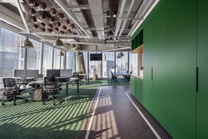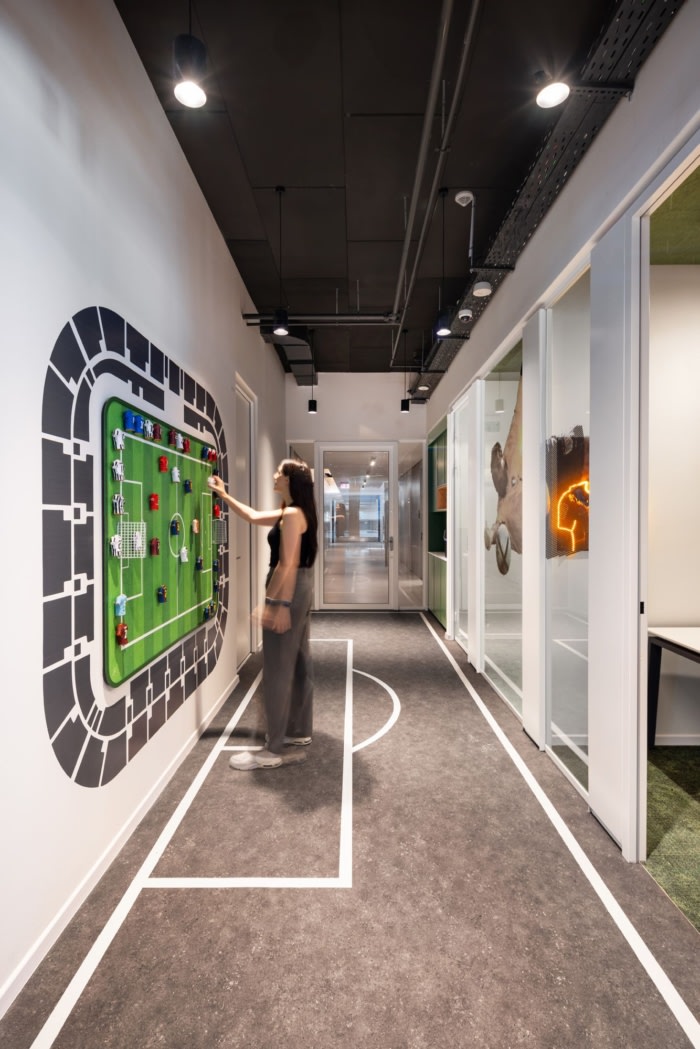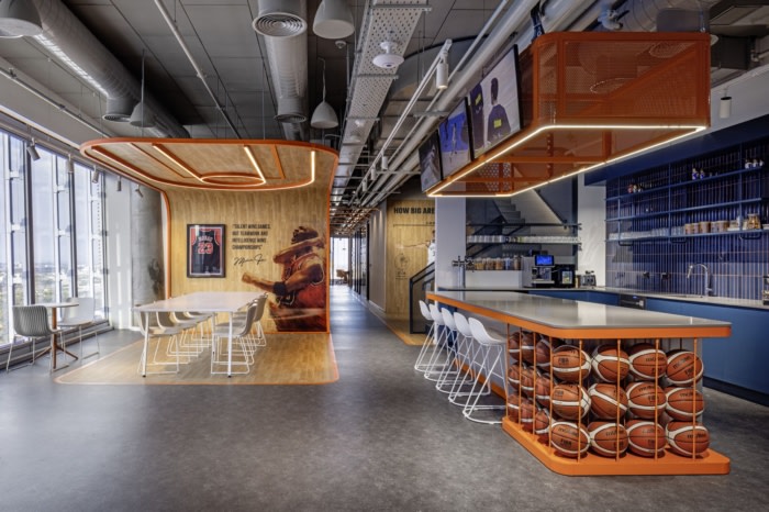 一个7层楼的办公空间,专为一家体育科技公司设计,将事情提升到一个全新的水平。每层楼都是一次独特的体验,致力于足球、篮球、美国体育、奥运会等主题,甚至还有博物馆风格的布置。这个项目对细节的关注是超乎想象的,使其成为任何体育爱好者的天堂。想象一下,漫步在真人大小的壁画中,周围环绕着体现每项运动精神的家具。#办公楼设计装修#