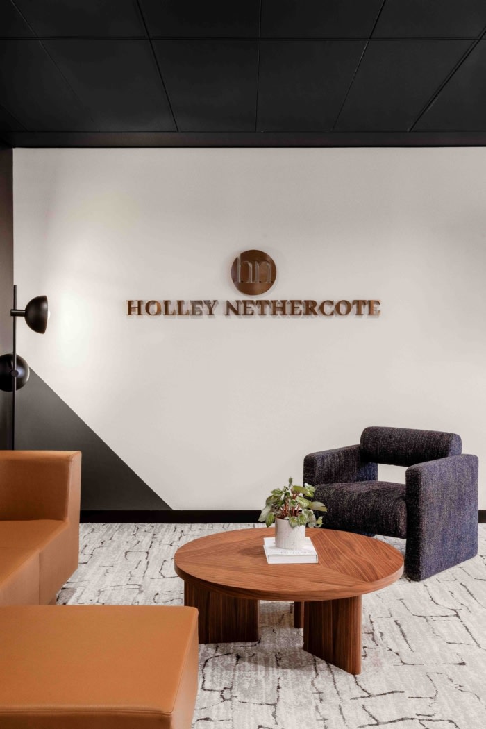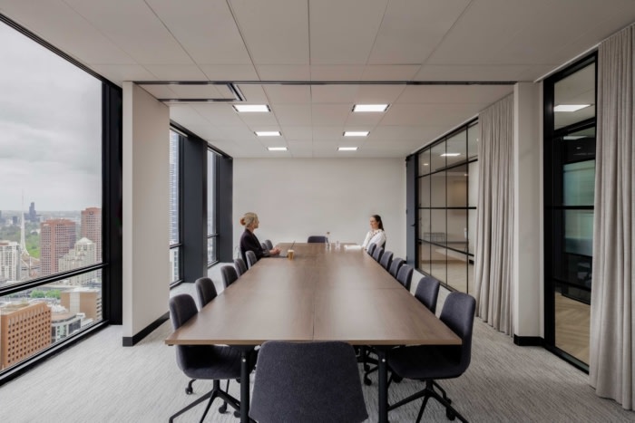 一进门,迎接住户的就是迷人的城市全景,充足的自然光增强了质感和材质。这个迎宾区包括沿窗的长椅座位、带长凳式座椅的设备齐全的厨房,以及一个宽敞的休息空间,旨在兼具休闲会议场所和灵活的工作空间,供笔记本电脑使用或即兴讨论。走廊入口墙壁上的微妙弧度起到了有机的引导作用,将居住者顺利地引导到会议室和办公室的其余部分。#公司办公室装修设计#