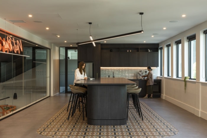 设计中心是加强员工协作和促进联系。它旨在消除传统的工作场所孤岛,营造一个促进思想分享的环境。位于夹层的行政办公室已被改造成精致的行政会议室和多功能的接待空间,而以前的公寓房间现在用作协作工作空间。电动汽车充电器和升级的行程结束设施的加入促进了员工采用环保通勤方式。#办公楼设计装修#