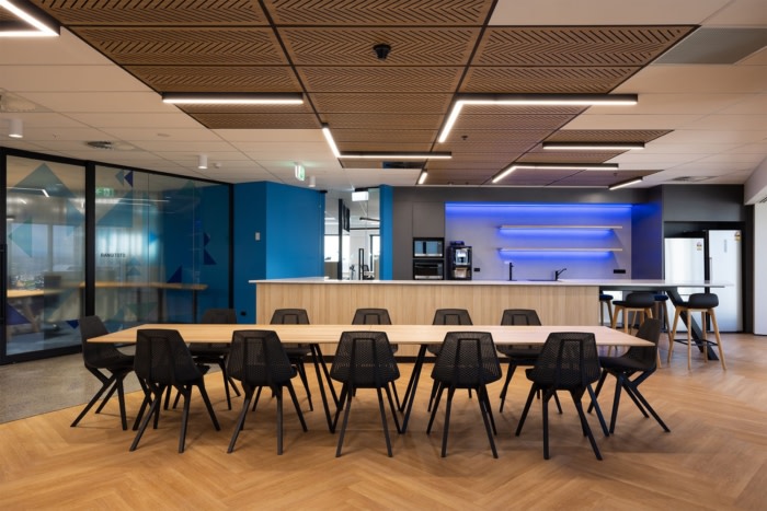 企业的新品牌以大胆、开放、灵活和充满活力的元素为特色,融入了工作场所设计。引入棱角分明的墙壁和地板图案以呼应品牌,同时最大限度地利用建筑周边窗户的自然光。其结果是形式与功能的和谐融合,展示了企业焕然一新的品牌形象。深思熟虑的设计凸显了在打造充满活力和包容性的工作空间时融合全球洞察力、当地文化参考和品牌形象的重要性,为员工、访客和候选人创造一个热情、充满活力的环境。#广州高端办公室设计公司#