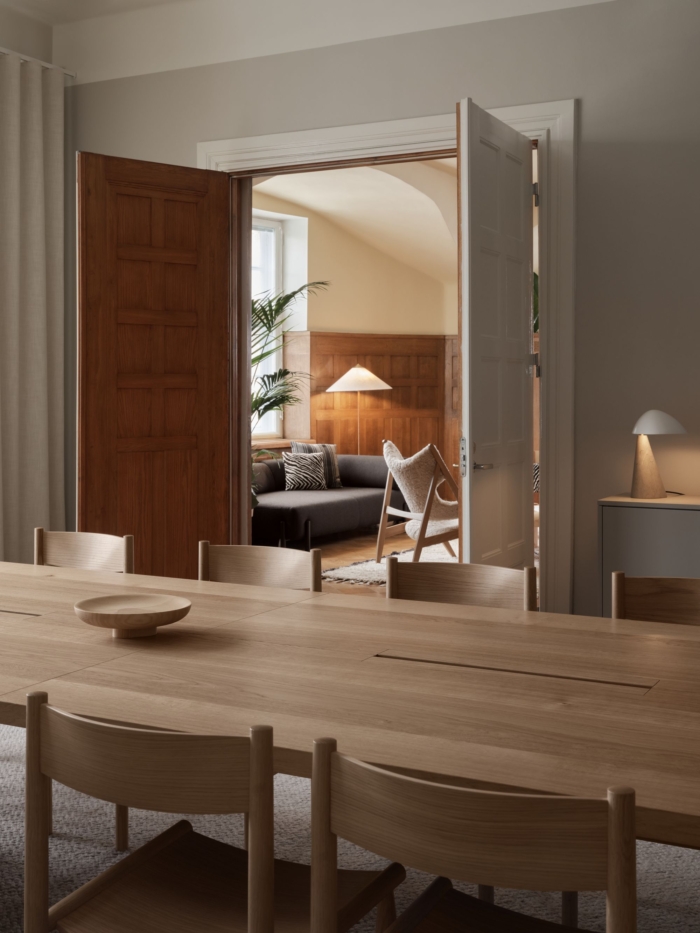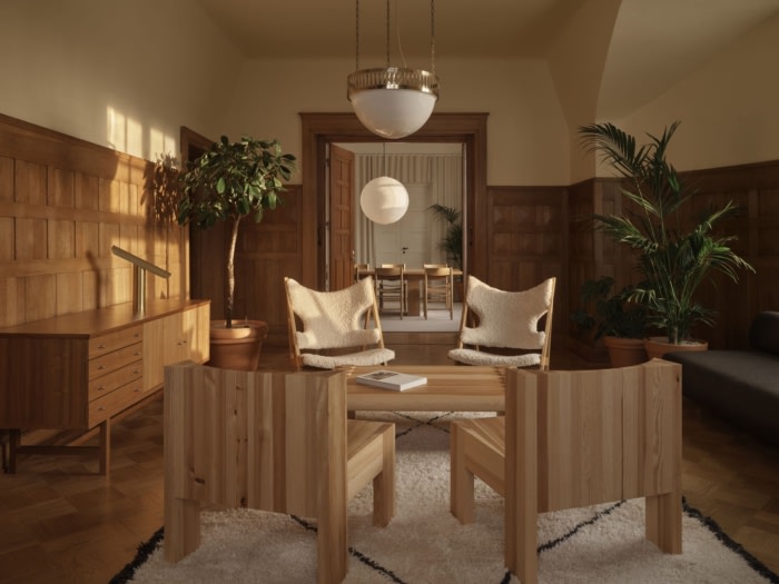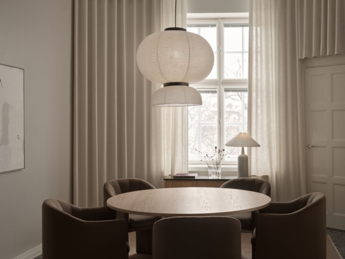 办公室位于一栋受保护的新艺术风格建筑内,散发着历史环境的氛围。设计选择承认了建筑的传统,向芬兰工艺致敬。整体氛围是优雅的北欧风格,采用温暖的木质表面和精心策划的照明,营造出精致的触感。#办公室装修公司#