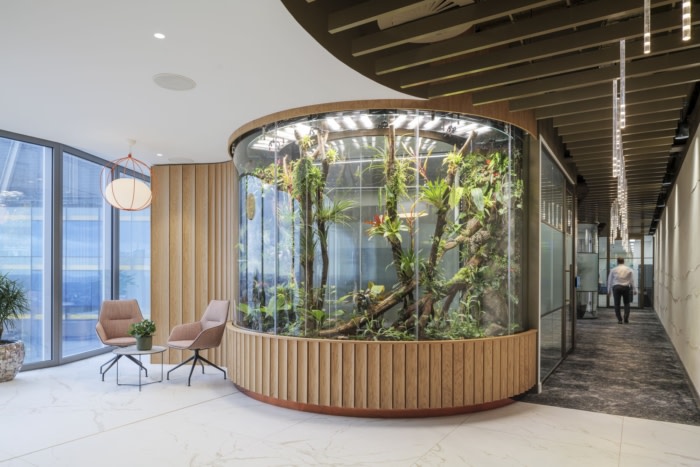 办公室设计:扇贝边缘的定制细木工制品和定制的钟乳石灵感灯参考自然颜色和纹理 日期:2024-4-9 15:49:52 人气:637 从沙子和海蓝色到涟漪效应的玻璃和墙壁处理,扇贝边缘的定制细木工制品和定制的钟乳石灵感灯,许多定制的固定装置和特色都参考了百慕大自然环境的颜色、形状和纹理。#办公室设计#该企业办公楼装修的第二个要求是确保高质量的工作环境,只指定具有超低或零挥发性有机化合物排放的材料和饰面,包括油漆饰面、粘合剂、密封剂、地板、隔音材料、家具和家具。#办公室设计公司# 上一篇: 公司办公室设计装修方案:鲜艳的色调是整个办公室餐厅营造动态氛围的首选 下一篇: 办公室装修设计:专注于木材的保暖贡献 为员工营造了舒缓的氛围