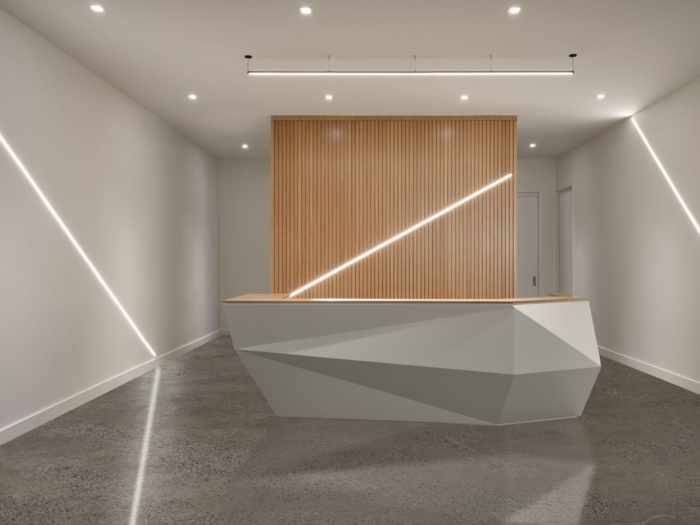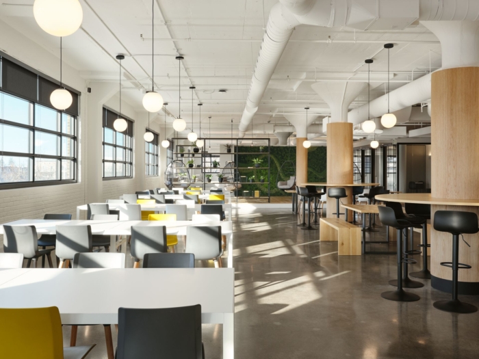 办公室装修设计专注于木材的保暖贡献,将自然融入这个生活空间,以增强身体、心理和情感健康。食堂的一堵植被墙,几十种植物,甚至大殿里还有一棵12英尺高的树,为员工营造了舒缓的氛围,同时改善了室内空气质量。