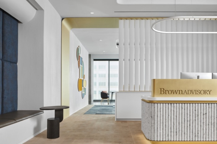 “扎根”的元素以正宗的当地材料为基础——石头、大理石和木材——参考了公司的诚信和实力?!熬隆钡脑馗泳潞土榛睢岷偷那?、间接照明和纹理——与该组织平易近人的文化相得益彰。这种动态组合使用黄铜和温暖木材的材料调色板,以及流行色彩,象征着力量、温暖和能量。#办公室空间设计#