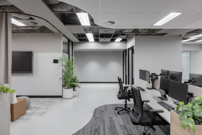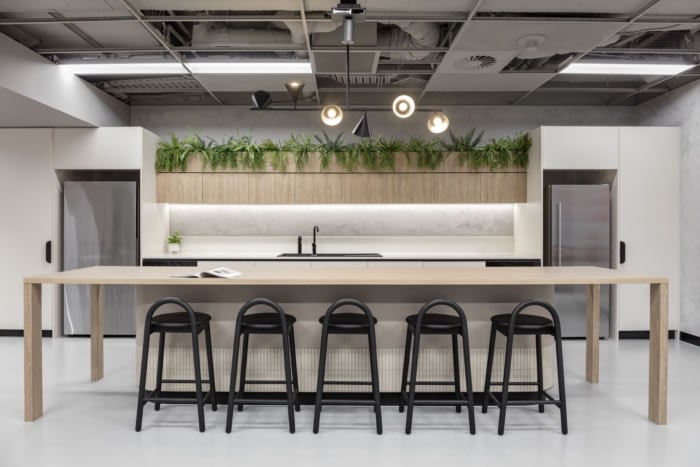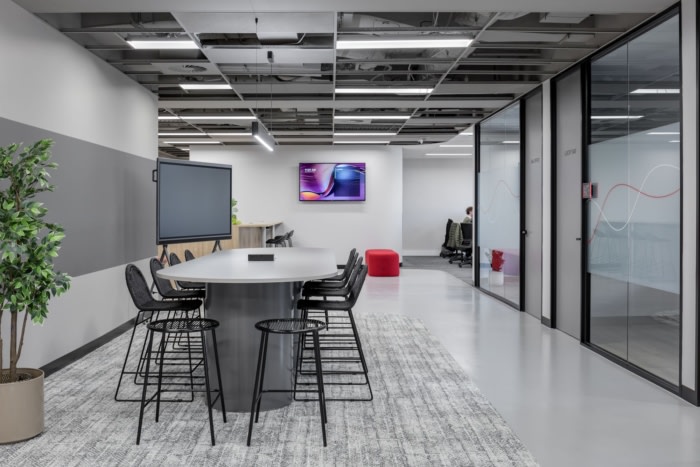 办公室的整个布局旨在促进协作、灵活性和创新。从休息区开始,这个多功能区变成了一个公共市政厅环境。该空间鼓励公开讨论,并支持全公司范围的会议,所有员工都可以聚集在一起,集思广益和放松。#公司办公室装修设计#