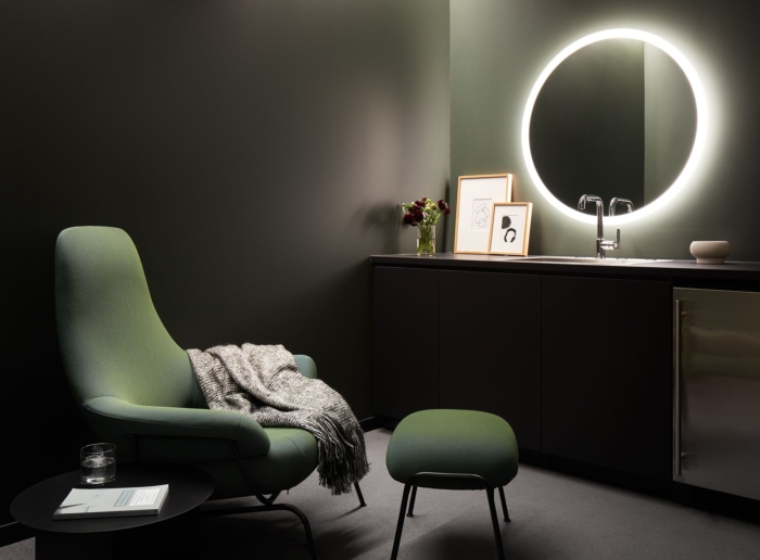 通过一个巨大的深色石材体量来表达令人难忘的抵达体验,该体量上摆放着拉丝钢制的标牌,为接待处营造出大胆的背景。酒店为午餐和内部活动提供灵活的共用休息室,但可以将其关闭,用作更传统的会议室。为行政人员和员工分配了开放空间,而标准化程度较低的私人办公室不再是个人的,而是通过酒店分配的。#办公室设计装修公司#