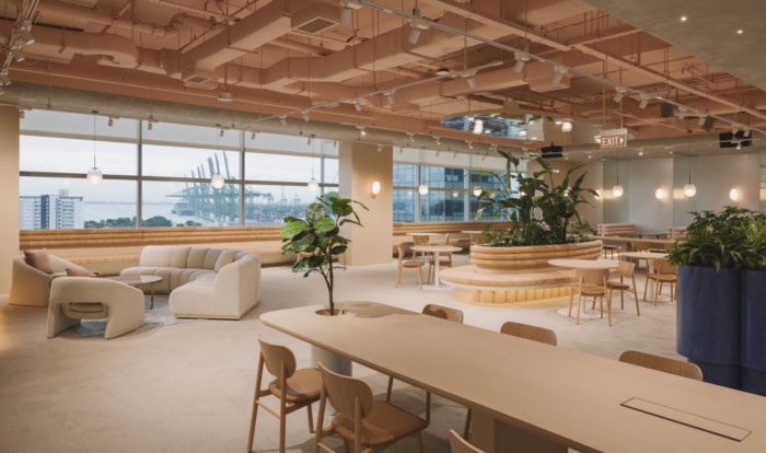办公室装修:花园咖啡馆的开放式天花板呈现出柔和的珊瑚色调
