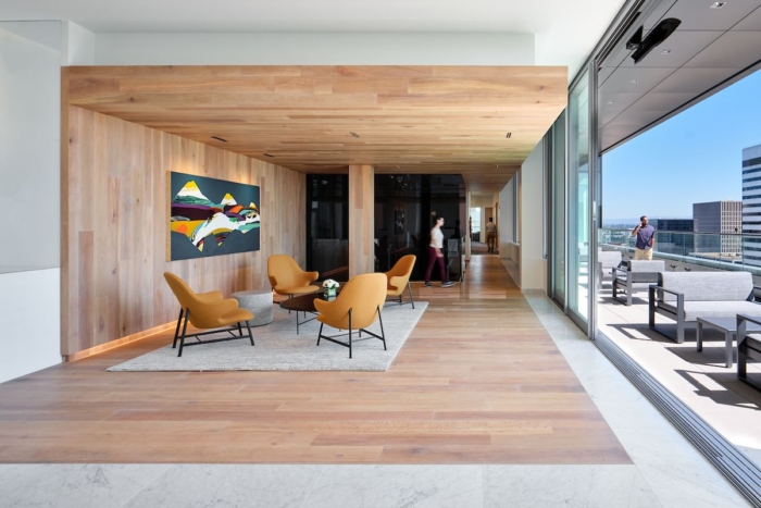 办公楼室内设计:简洁的几何形状和清晰的材料轮廓平衡了大胆的新艺术品系列