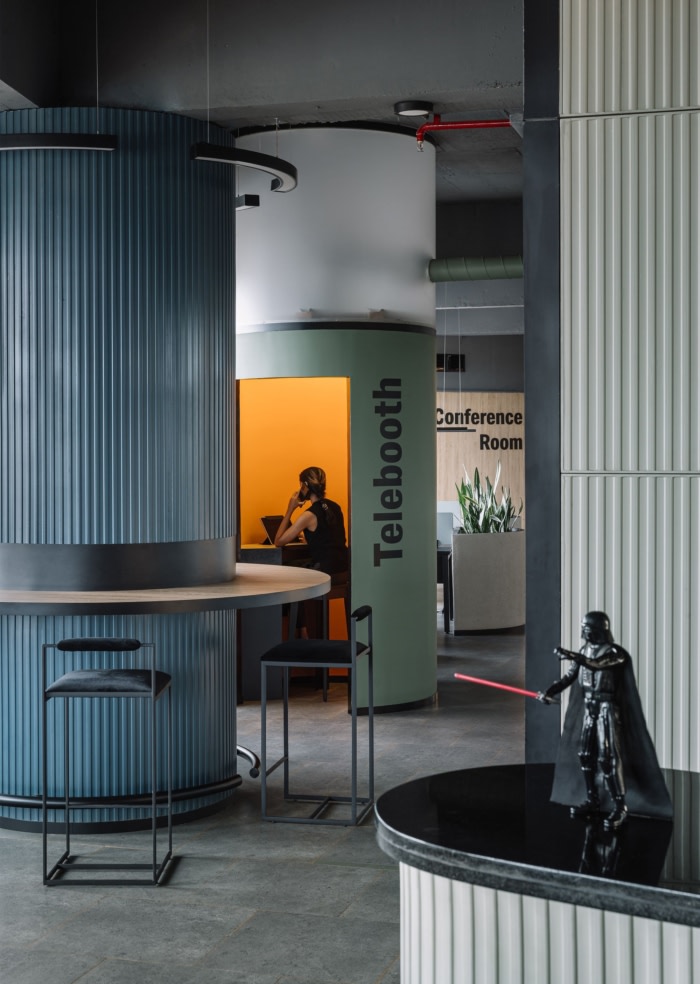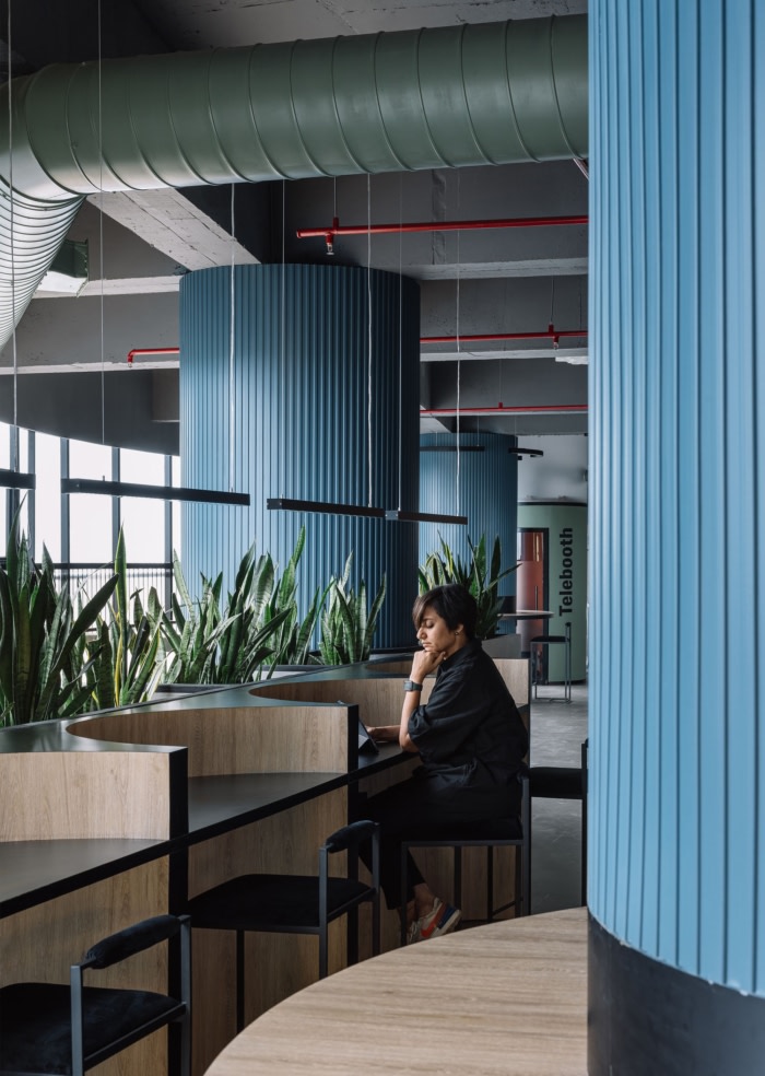 柔和的角度和圆润的轮廓消除了粗糙感,为多功能实用空间铺平了道路,这些空间可用作休息区、储物单元和高桌,鼓励自发的参与和充满活力的活动。#公司办公室设计理念#