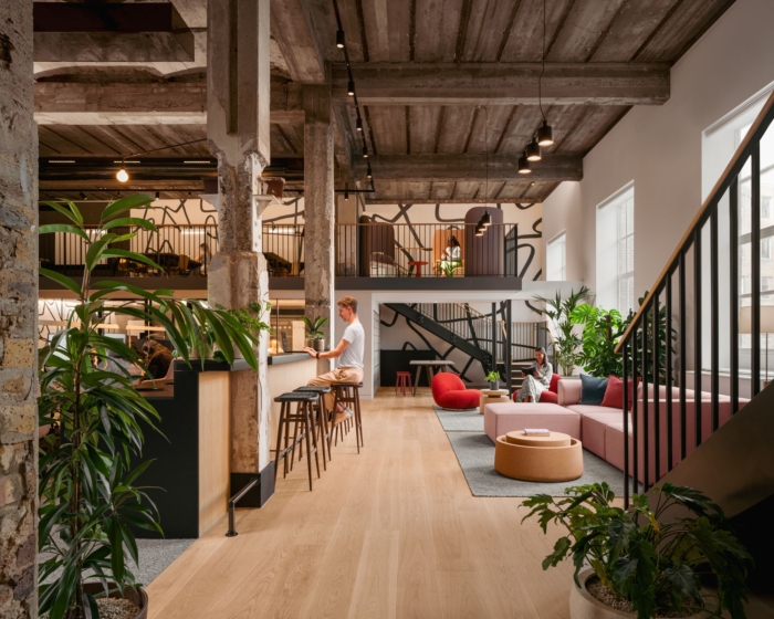该空间横跨五层,包括八个夹层、双层高天花板和一个螺旋楼梯,用于鼓励不同楼层的有机连接。新的伦敦办公室体现了为工作场所的意义和归属感的新时代打造体验的趋势。#办公室装修公司#