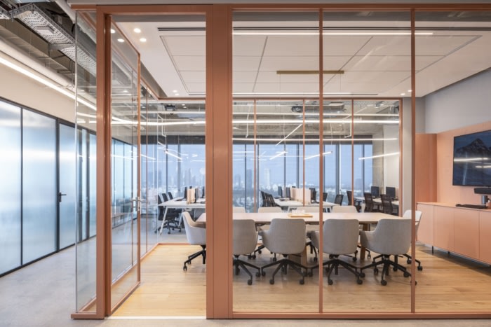 这颗跳动的心脏不仅鼓励自发的会议,还培养了非正式的工作空间、共享聚会的场所和充足的呼吸空间。材料、家具和木工的刻意选择体现了精心的规划和对细节的关注,在围护结构、天花板和地板的处理上刻意形成对比,营造出一种自由的氛围。#高端办公室装修#