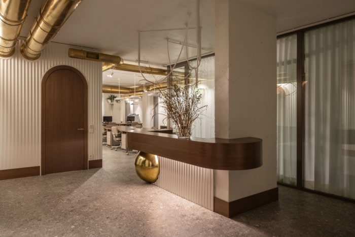 另一个基本元素是石膏槽的表面。这些长笛象征着公司的员工,从律师到建筑工人,每个人都至关重要。因此,对空间的质量给予了如此多的关注。所有主要形式都是自给自足的,但彼此之间牢固地连接在一起,创造了一种欢迎访客-客户的人物表演。#广州知名办公室装修公司#