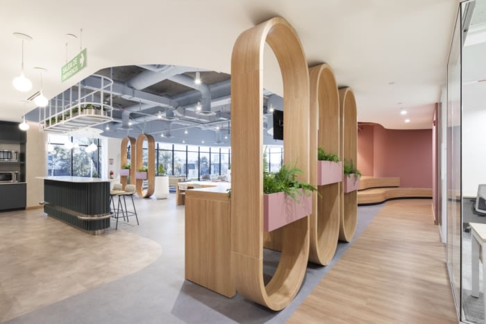 通过实施不同的暖色和纹理,创造了一个混合用途的空间。它有不同尺寸的私人办公室,不同主题的会议空间,从更正式的房间到更灵活的房间,有模拟我们家客厅的空间,个人会议空间,电话亭,产房,健康室,洗手间,以及一个开放的共享区域,看起来更友好,更温馨。#时尚办公室装修#