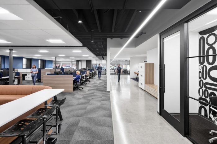 办公室设计体现了开放的新闻编辑室概念,服务于不同的工作方式和协作工作。家具解决方案有助于对突发新闻的快速响应,支持报纸快速信息传播的需求。休息室是一个特别受欢迎的空间,它结合了滑动吸音板以提供适应性,与营销团队无缝连接,同时提供根据需要扩展或封闭空间的选项。#办公室装修设计方案#