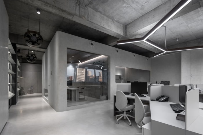 在空间的每个角落,设计都融入了让人联想到机舱门窗的“圆角”。此外,走廊上还安装了机舱专用的换气扇,不仅可以作为装饰品,还可以作为增强室内空气流通的实用工具。这种设计选择带有隐喻层,象征着船舶的弹性,能够承受风、压力和前进的动能。它旨在为空间的每个区域注入自己的身份,同时编织出一个有凝聚力的叙事。#工业风办公室设计#