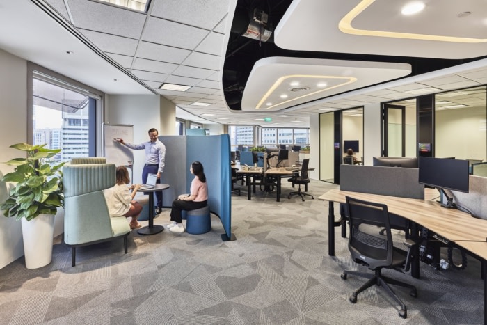 设计具有当地风情,为办公室带来“甘榜”(乡村)精神,宽敞的茶水间设有各种角落和座位,邀请员工喘口气,喝杯咖啡,进一步培养联系感。为内部消息和标注设计了一个特制的功能墙,以鼓励互动和参与。其结果是一个既关乎社区又关乎生产力的工作环境。#办公室设计装修方案#