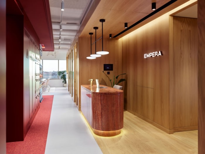 办公室内的工作空间不仅采用了根据员工需求量身定制的现代办公理念,还集成了适合混合工作模式的灵活工作空间。家具的选择体现了设计的语言,为员工保留了符合人体工程学的舒适感,反映了“精心策划的折衷主义”风格,在整个空间中协调了传统和现代元素。独特的地板材料定义了空间流线,在增强视觉美感的同时,也吸引了人们对材料选择的丰富性的关注。#办公室室内设计风格#