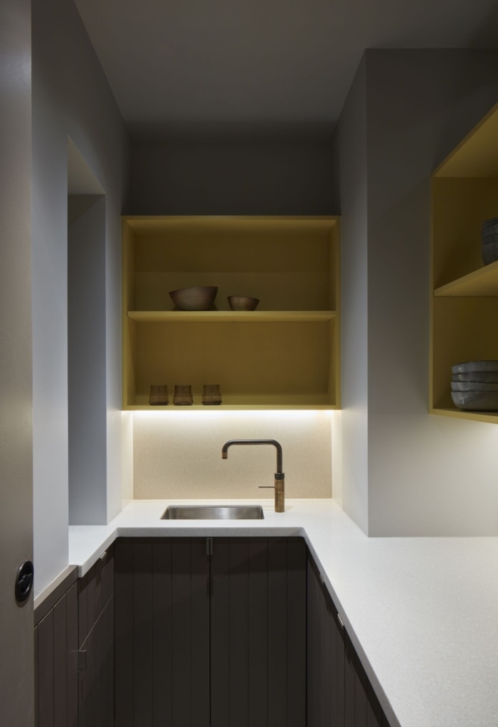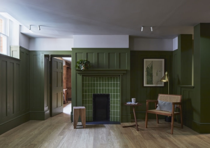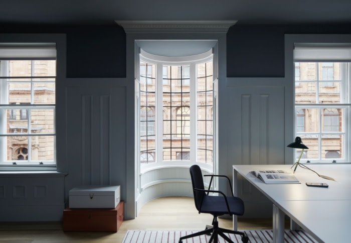 立面是工艺美术运动的精美典范;由飘窗和垂直堆叠的玻璃窗定义,搭配优雅的梯形石和宣告前门的分段山形墙饰。这种做法从历史绘画中汲取灵感,使他们能够了解特殊露台的本质和早期维多利亚时代的特征。设计意图的首要目标是恢复原来的计划,包括时代比例、古怪的交叉夹层、花卉图案、独特的凸窗和宏伟的中央楼梯。#办公空间设计#