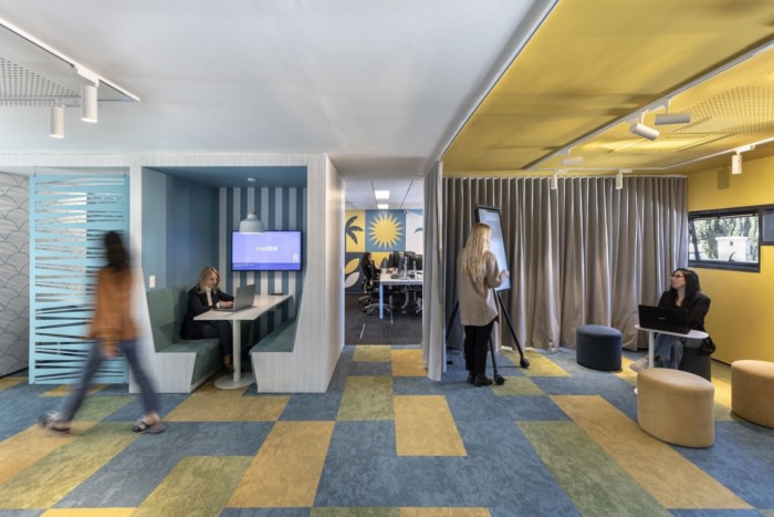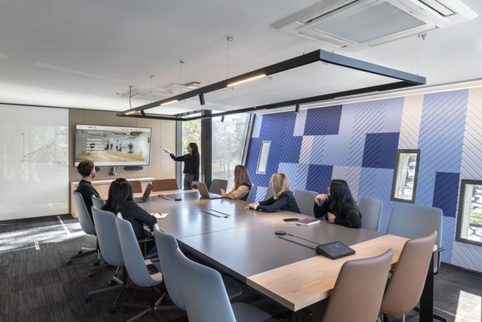 该设计的指导原则包括将整个区域划分为四个“社区”,每个“社区”的灵感来自该国四个象限的主要文化和地理特征。布局设置遵循基于活动的模型,该模型提供多种选项和安排来支持各种任务,而不是强迫人们在单一环境中工作,绑在办公桌上。这种模式有利于创新,使团队能够无缝协作。在这方面,连通性起着关键作用,因为它同时实现了整个空间的自由流通和混合工作安排的实施。#办公室室内装修#