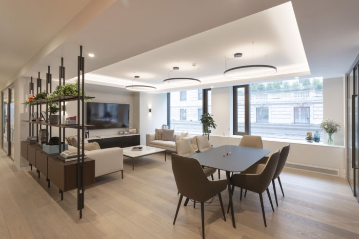 热情好客一直延续到休息空间,豪华的家具和壮丽的景色欢迎客人和同事。柔和的中立使人保持冷静,并为重视熟练程度和可持续增长的决策定下基调。#广州办公室设计装修公司#