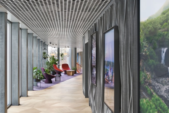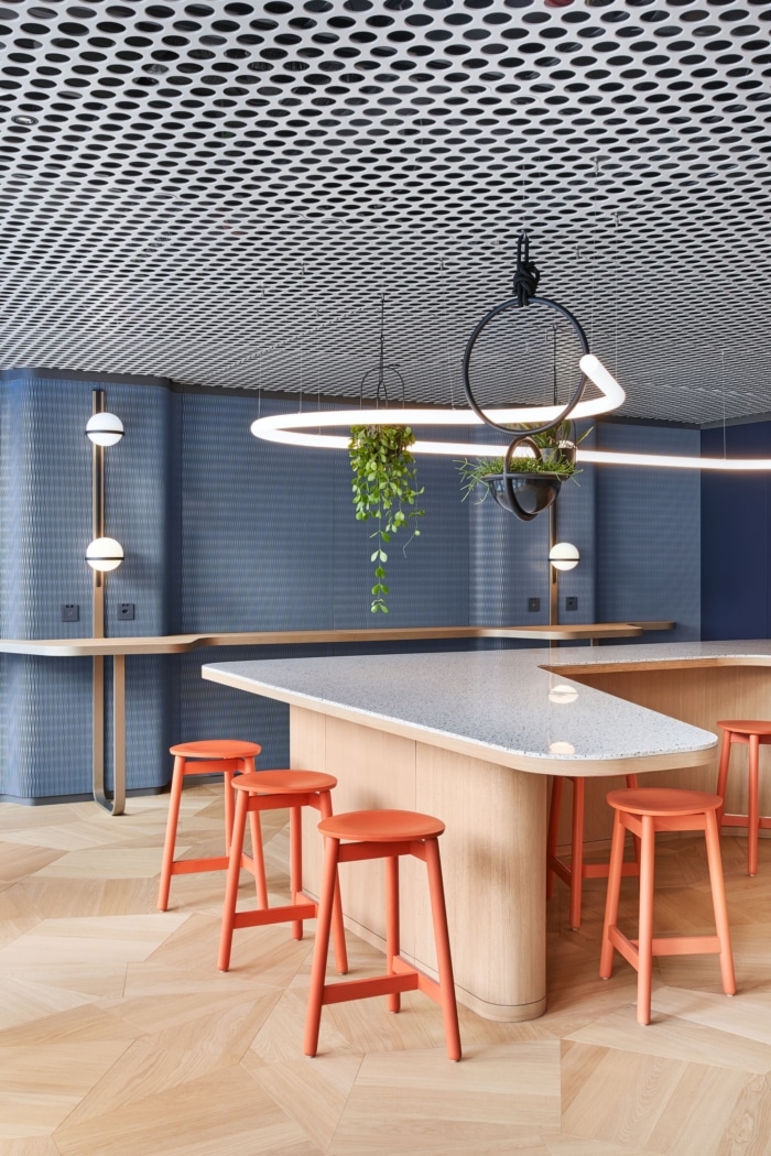 办公室装修设计:主旋律是圆角 彩虹色金属墙板增添了特殊效果和舒适感