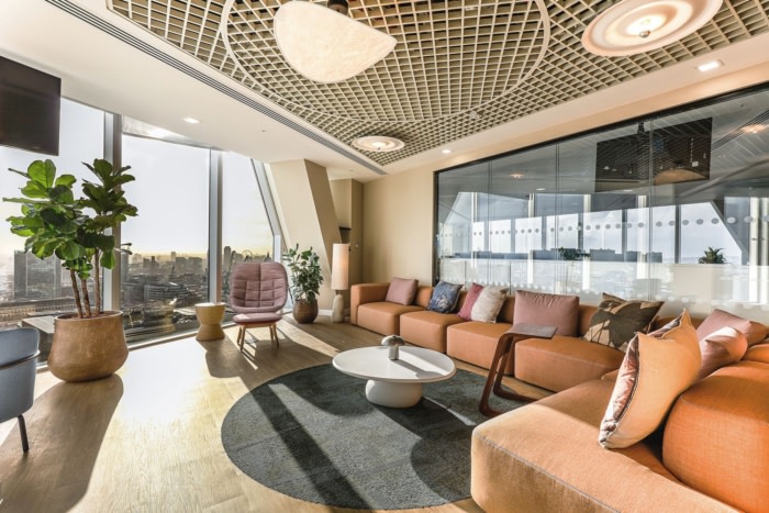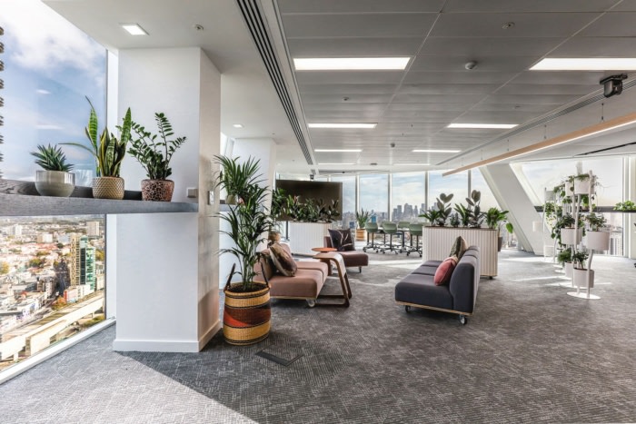 该团队从非洲大陆戏剧性和多样的景观中寻找美学灵感,这些灵感在方案的调色板以及纹理、图案、形式、艺术品和照明中得到了体现。该方案还以最初在非洲发现的种植物种为特色,所有这些都设置在温暖而朴实的整体调色板中,并带有大胆的边缘。#办公楼装修#