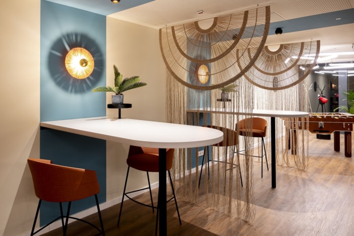 新办公室可容纳200名员工,占地约1400平方米,分为两个办公区、会议室、一个带酒吧和用餐区的休息室、几个可以举行小型会议的壁龛、一个可以复制礼堂进行大型演示的区域,甚至还有一个逃生室。在这个新空间的中心是里斯本广场的仿制品,除了瓷砖和软木外,还有一棵树,周围环绕着著名的葡萄牙鹅卵石路面。#办公室装修公司#