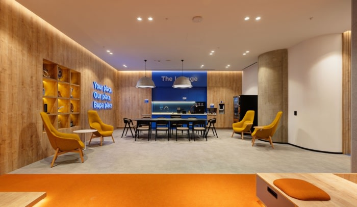 大型社交区位于入口处和开放式办公室的中间,是组织活动和将员工聚集在一起的中心枢纽。此外,为了打破开放式办公区域的单调性并增加互动性,在工作站之间放置了可以用作短期工作空间的社交区域和办公桌轮用桌。#办公室室内设计公司#