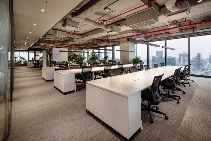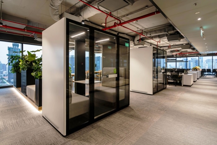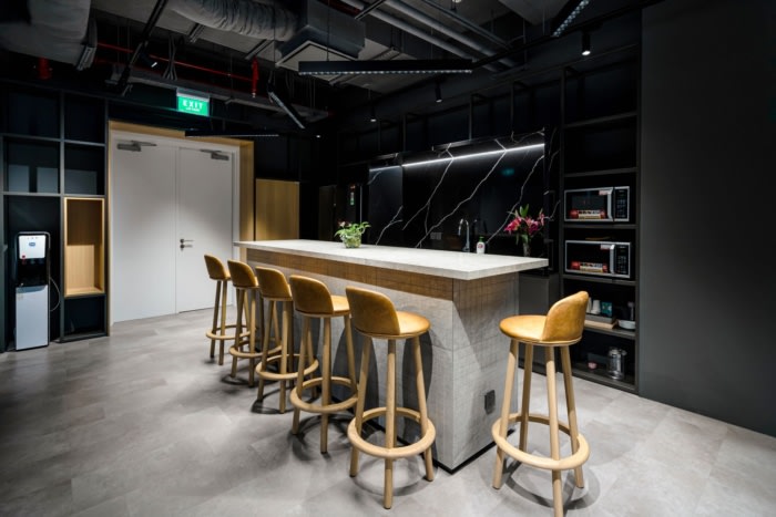 在工作区旁边,餐厅吧台由玻璃墙隔开。这种设计最大限度地减少了食物异味,同时在休息时为办公室增添了轻松的氛围。工作空间的一个显着特点是没有单独的文件柜。取而代之的是,由蒲公英设计和建造的带编号的木制文件抽屉系统排列在办公室的右墙上。这些井然有序的存储单元为更高效、更有序的办公环境做出了重大贡献。#广州办公楼装修公司#