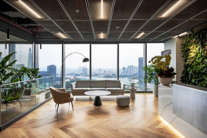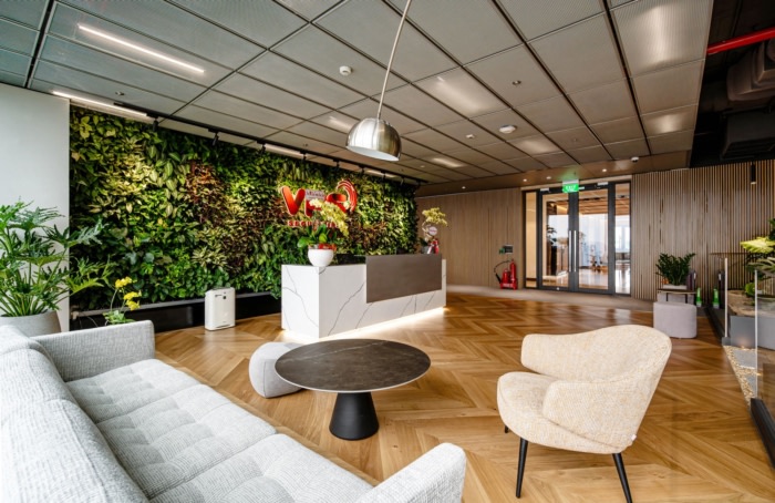 接待区的设计令人印象深刻,采用醒目的橙色配色方案。在接待台后面,一面由蒲公英精心打造的绿色墙面上醒目地展示了VPS的标志。等候区空间宽敞,配有意大利进口沙发,辅以VSPC木地板,营造出豪华而精致的氛围。众多的绿色植物增强了接待区和等候区,为客户提供了热情和愉快的氛围。#办公楼装修公司#