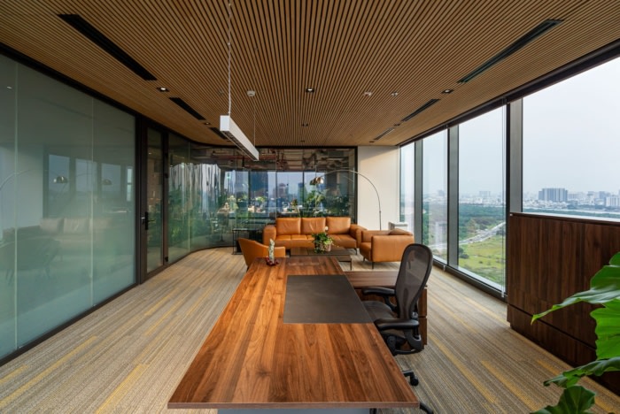 办公楼装修:采用醒目的橙色配色方案 木地板营造出豪华而精致的氛围