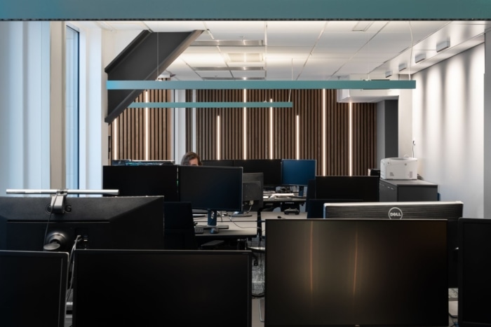 内饰概念的灵感来自不同的元素;天空,海洋,森林,地球。闪亮的钢板与原始混凝土地板、鲜艳的色彩、绿色和定制的细木工制品相得益彰,共同营造出个性。工作环境适合游戏创作者,具有出色的人体工程学、声学和照明设计。为未来的成功和发展提供功能。#办公室装修设计#