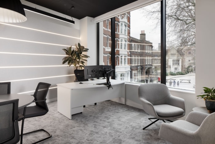 一楼是一个多功能空间,称为“大厅”,包括接待区、欢迎区和活动区,为游客营造出温馨的氛围。在楼上,重点转移到主要工作楼层,旨在促进生产力和团队之间的协作。与此形成鲜明对比的是,楼下区域专门用于社交活动,为员工提供了一个放松的环境。“龙门架”融合了触地桌和长椅座椅,并配有集成式花盆。除了为参观者提供触地工作空间外,这款定制细木工制品的战略性放置还锚定了工作空间的顶层,并有助于景观化工作社区。#办公楼设计装修公司#