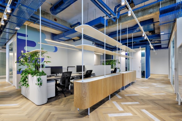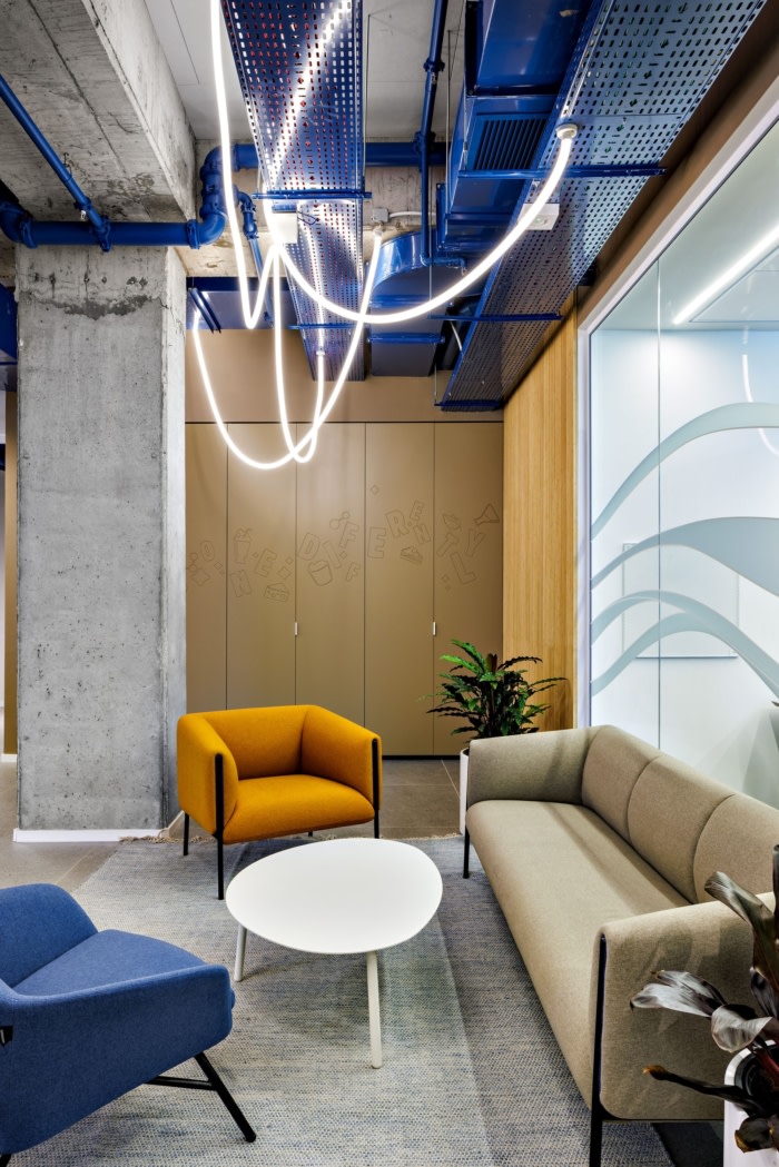 办公室设计装修:公共区域采用了柔和的色彩和俏皮的照明方案