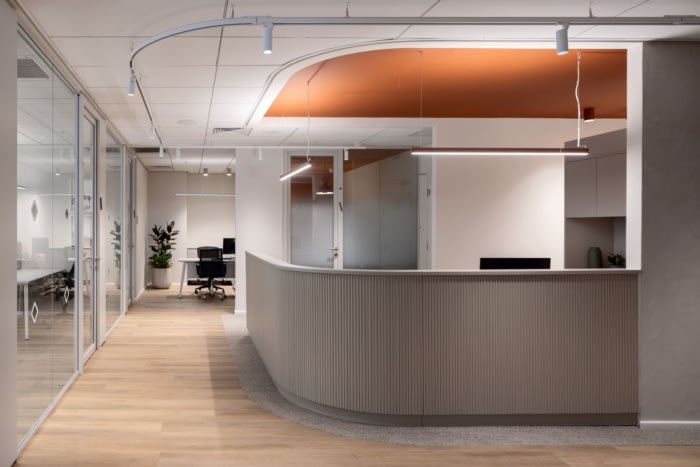 设计原则侧重于融入一系列坚实而优雅的材料,并搭配平衡和互补的色调。这种组合创造了一种永恒的配色方案,在空间中灌输了一种宁静的感觉。其目的是打造一个不仅功能性而且舒缓的环境,促进平静和专业的氛围。此外,还引入了充满活力和轻盈的品牌元素,以迎合劳动力中的年轻群体。这种能量的注入确保了空间不仅宁静,而且引人入胜且充满活力,反映了年轻员工的活力。#办公室设计装修公司#