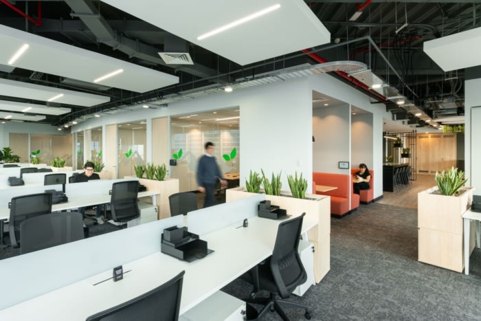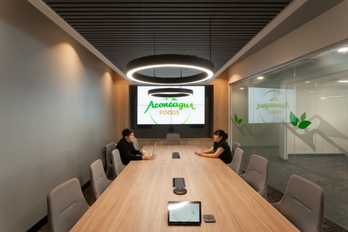 基于对农作物、种植园和蔬菜农场之间密切关系的理解以及该公司的工作,设计师提出了借鉴乡村图像的想法。这种乡村意象反映在选择使用的调色板中,绿色和棕色;使用让人联想到木材的材料和纹理;在家具和天花板中发现的主要是有机形状;而且办公室周围到处都是植物。#办公室装修公司#