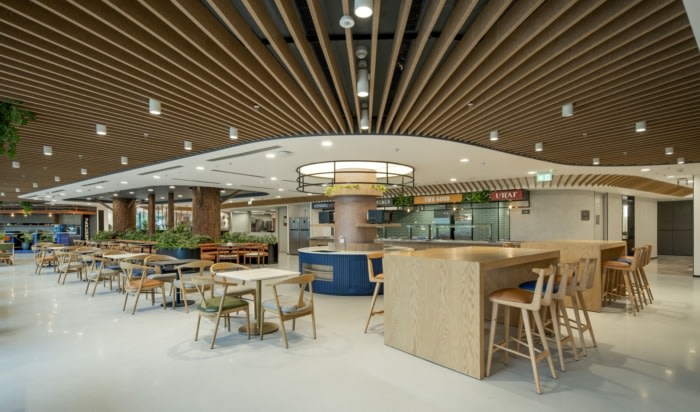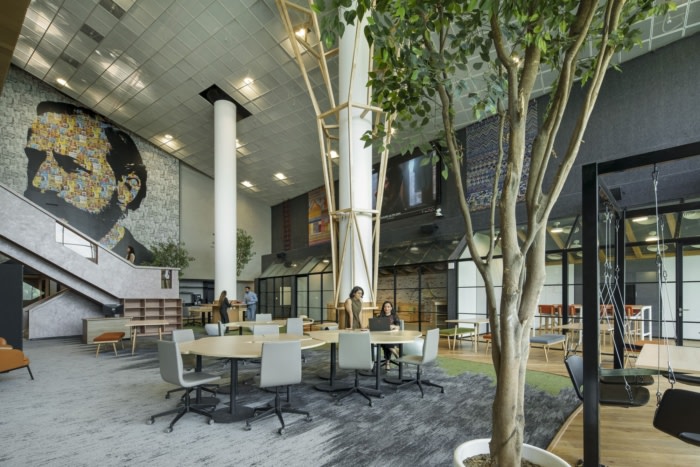 不可否认,重新设计的核心是商业花园。郁郁葱葱的绿色植物覆盖着每个工作楼层,模糊了室内和室外之间的界限。这不仅仅是关于美学;这是关于促进健康和正念的。花园兼作合作的市政厅,融合了自然元素,营造出宁静的氛围。它战略性地放置在每层楼的尽头,提供各种座位选择——秋千和有机形状的桌子——满足不同的喜好并促进联系。这种设计独创性鼓励了来自不同部门的团队之间的互动,激发了推动创新的对话。#专业办公楼装修公司#