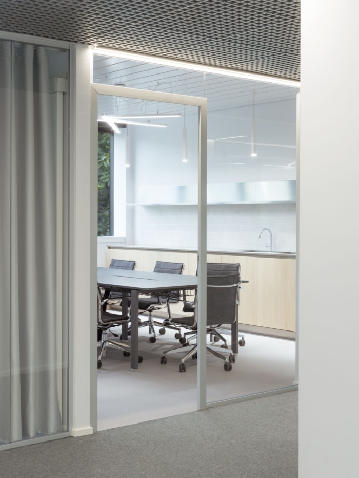 后疫情时代的情况对空间布局产生了重大影响。目标是避免开放空间概念,同时保留其优势??占浯笮〔灰?,从小到超大不等,并使用玻璃隔板来确保声学舒适度。会议室的大小也各不相同,从小到大,并配有现代数字预订系统。#办公室室内装修公司#