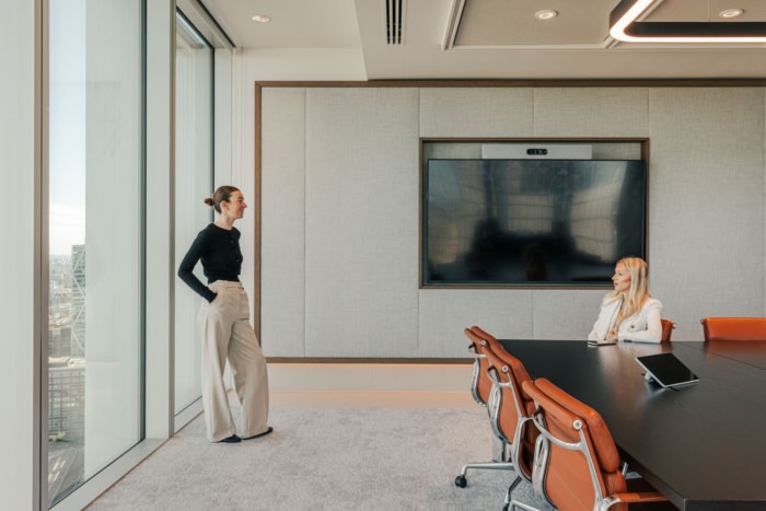 大型会议套房是办公室的中心,无论是字面上还是比喻上。在他们所从事的工作类型需要的环境中,到处都是独立的办公室,只有 18 人在开放式地板上工作,会议套房拥有完全灵活的墙壁,兼作将人们聚集在一起的社交和活动空间。茶点和接待区彼此遵循相同的极简主义语言,配有木材细节以创造联系,瓷砖上点缀着色彩,蓝绿色喷涂服务将其与办公室的其他部分区分开来。#办公室室内装修公司#