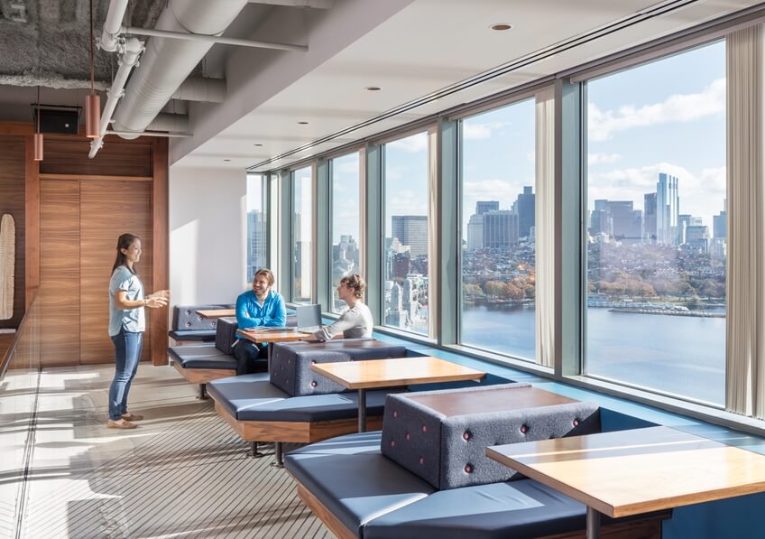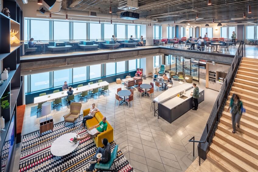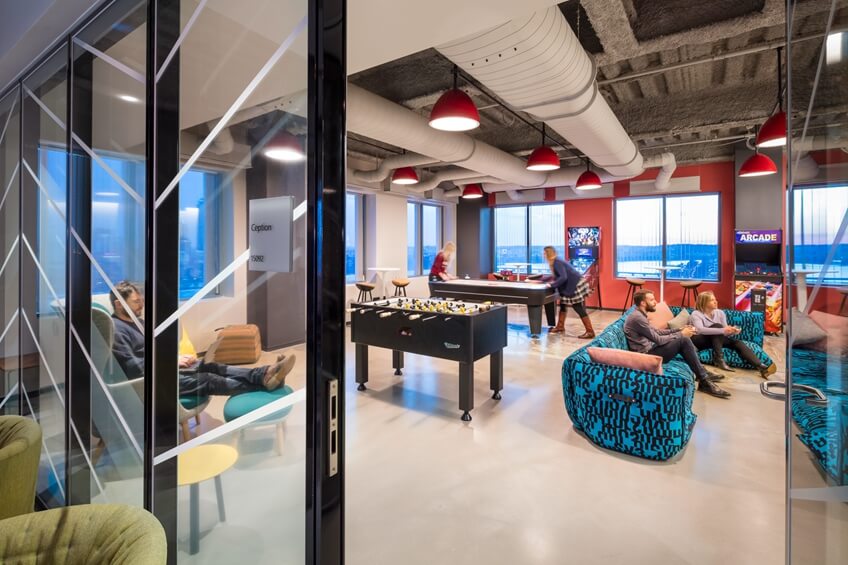 拥有原型制作空间、虚拟现实游戏和绿色屏幕空间,以及实习、社区拓展和与“编码女孩”等团体的合作空间。这些空间配备了咖啡师酒吧调酒师等提供支持,该酒吧毗邻一套更大的多用途客房,供内部所有工作员工会议和行业活动使用。