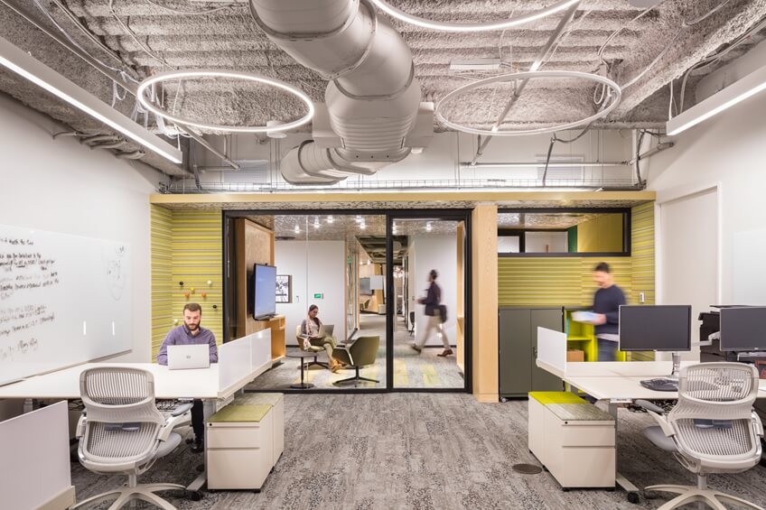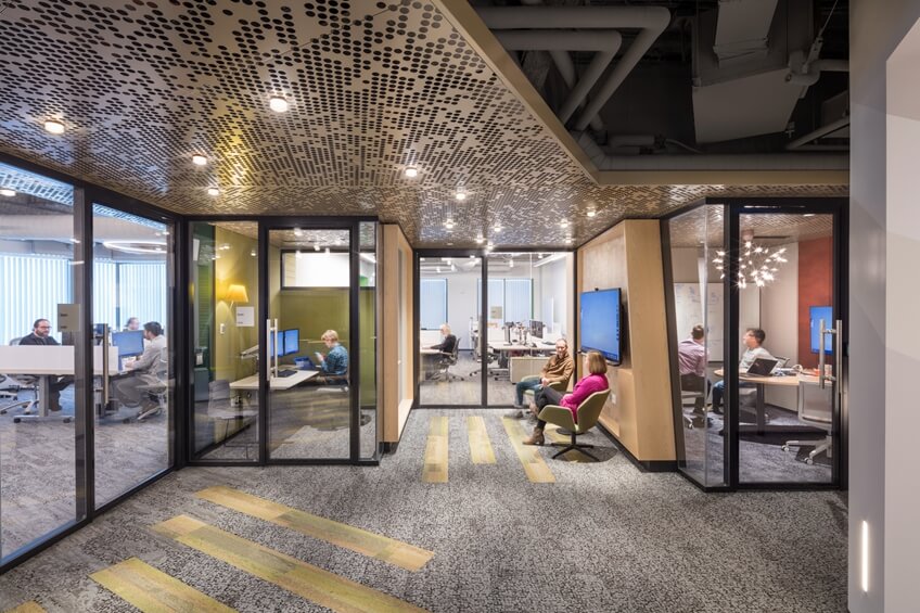其办公空间装修设计意图是创建一个感觉不那么有公司气息、更受欢迎和更舒适的地方。在整个设计装修过程中,有各种温暖和图案的材料,独特的照明和家具唤起精品住宅或接待环境,而不是一个工程总部。这种氛围蔓延至主要的客户接待层,这一层不仅仅是会议空间,还突出了对未知探索和创新的关注。
