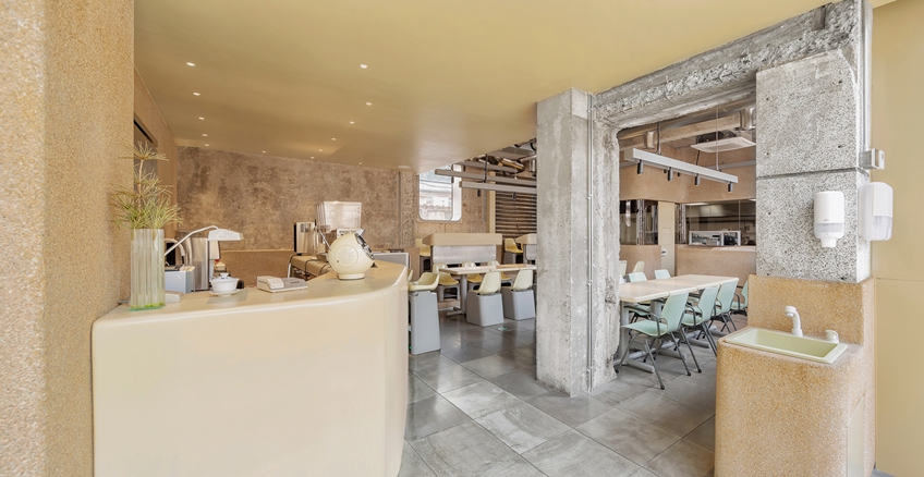 所选材料迎合了空间中自然舒适的关系。 我们添加了新的墙体材料,同时保留了原有的墙壁,这些墙壁整体上浇筑了混凝土和石头颗粒。 此外,里面的气氛平静而对着水磨石。