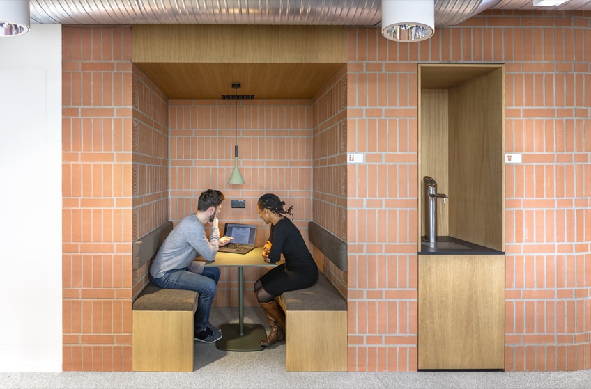 加强分散在三层楼的团队之间的内部连接,方便他们之间的移动。流通成为我们如何安排空间的主要战略驱动因素。以创新的方式利用传统建筑材料,使用裸露砖块和木板创造独特而固定装置的内部装饰,以传达建筑中的诚实,这种诚实超越了传统。