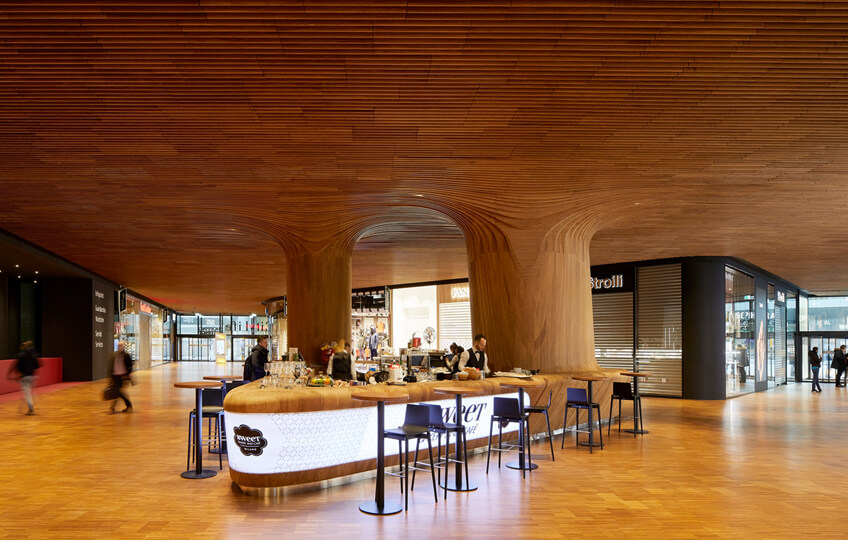 这座高170米、共有44层的建筑与周围公共广场及公园连接在一起,在地面上与城市生活中的三条主要轴线对齐。其办公楼装修设计的曲线几何图形是由这三座城市的轴线在塔底交错相交所产生的向心力所定义的。
