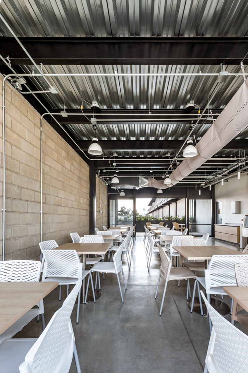 使用的材料有水泥块、黑钢、混凝土和水晶。综合起来,给人一种与木制家具和太阳温暖的光线形成鲜明对比的工业感觉,为工人创造出一个宁静和谐的环境。