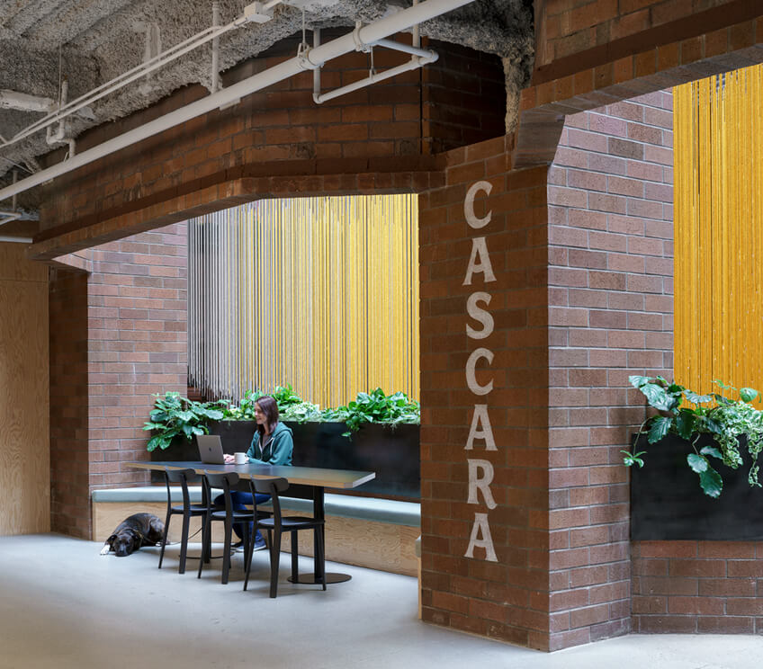 回顾这栋建筑的历史,把过去的两层办公楼装修都剥下来,露出了原来的内部砖层,并重新建立了原来在中庭周围安装的黑色钢制栏杆一样?;谷∠说粝碌奶旎ò?,以提高开放性和灵活性,并创造一个更视觉连接的工作环境。